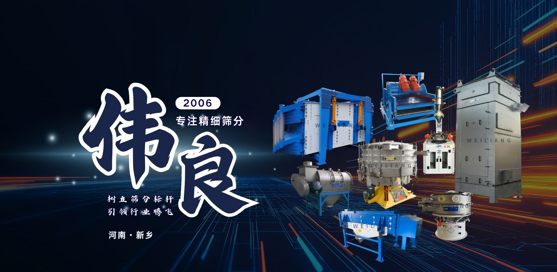 偉良篩分機械有限公司創(chuàng)建于2006年,是一家從事精細篩分研發(fā)、生產(chǎn)、銷售為一體的技術企業(yè),其主導產(chǎn)品有旋振篩、搖擺篩、氣流篩、直線篩等,廣泛應用于化工、食品、醫(yī)藥、冶金、礦山、鋰電等行業(yè),并遠銷海外50多個國家和地區(qū)。